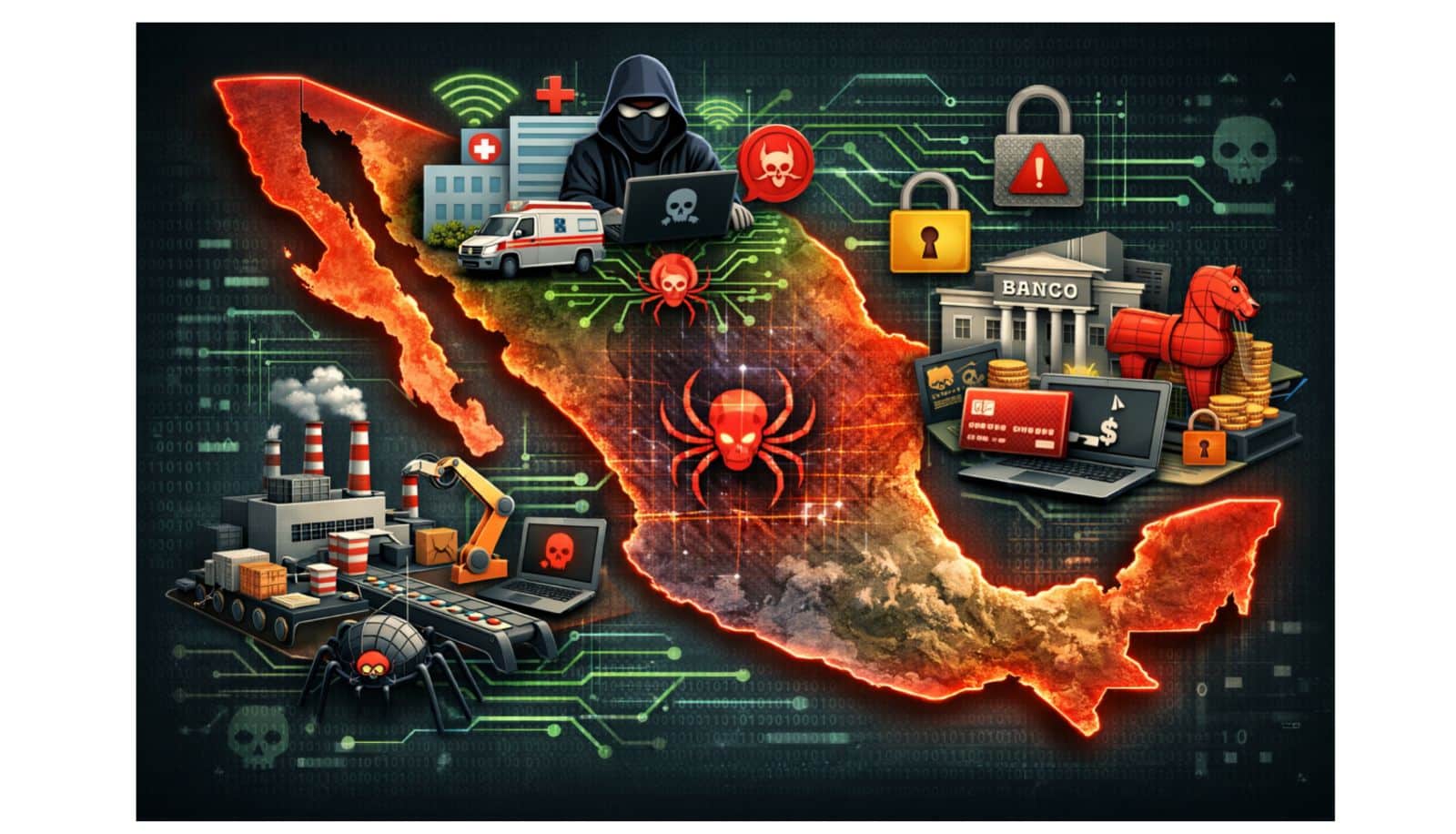 México entra a 2026 con un nivel de exposición digital sin precedentes. Los datos de plataformas como HackRisk.io muestran con claridad dónde están los impactos reales: malware como técnica dominante y sectores críticos como Salud, Manufactura y Retail/Finanzas en la primera línea de riesgo.