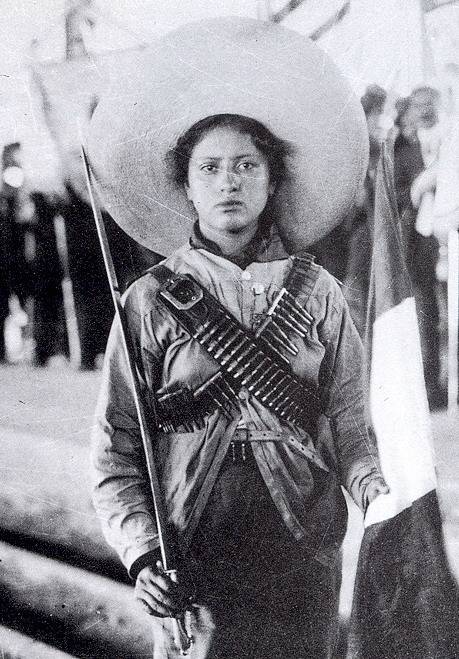 Ahí está. Contigo. Sólo para ti. Eras tan pequeña cuando cambiaste tus ropas de niña por una blusa de manta, unas enaguas y falda larga amplia de algodón, ese rebozo sobre los hombros, huaraches porque no te dieron botas, tus trenzas recogidas para ir a combate. No podía faltar el rifle y las cartucheras cruzadas en el pecho, ni el machete que sí conseguiste de otro indio muerto. Luchaste a su lado. Eras valiente. Querías justicia y libertad. Fuiste su espía y mensajera.