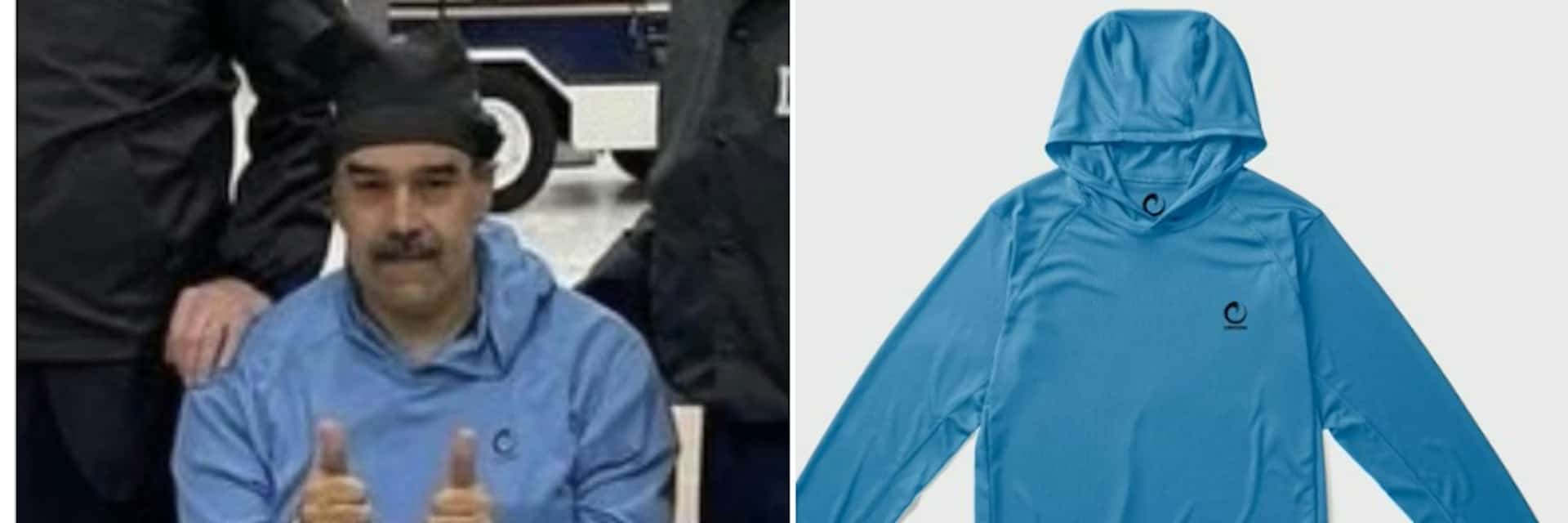El texto iba acompañado de una composición visual elocuente: a un lado, una fotografía del dirigente venezolano esposado, luciendo la sudadera azul; al otro, la imagen del mismo producto, tal y como se comercializa en la página web. La relación entre el acontecimiento político y el objeto de consumo no se explicitaba más allá de la irónica “bienvenida” a los Estados Unidos dirigida a Maduro, pero resultaba inmediata para cualquier lector familiarizado con la actualidad.