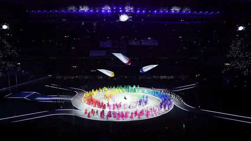 Avanzaba la destrucción en una pantalla, mientras que en la otra la pianista Gloria Campaner interpretaba música de Einaudi, lanzando al mundo la promesa de un reencuentro deportivo en cuatro años más, en los Alpes franceses, haciendo énfasis en la palabra “Esperanza”.