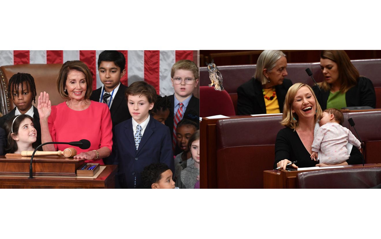 Sin lugar a dudas, una de las políticas mas destacables a nivel mundial es la todavía representante de la ciudad de San Francisco (California) en el Capitolio de los Estados Unidos de America, Nancy Pelosi, quien en sus biografías describe que su mayor vocación de vida ha sido ser mamá de cinco hijos en un lapso de seis años. Sin embargo, tras su llegada al Capitolio, Pelosi escaló las posiciones de liderazgo dentro de la bancada demócrata llegando a ser en dos ocasiones presidenta de la Cámara de Representantes en ese país. En esas dos ocasiones, al asumir el cargo lo hizo rodeada de niños, hijos de sus compañeros y de sus propios nietos, acción que tuvo implícitas señales, tales como la dedicación que en su tiempo tuvo su rol de madre y lanzar señales de que es la mujer más poderosa con la que se podría tratar.