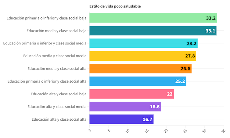 La población con un buen nivel educativo muestra hábitos más saludables, con independencia de su clase social. Esto es: las personas que tienen un buen nivel educativo, aunque estén desempleadas o tengan bajos ingresos, tienen mejor estilo de vida.